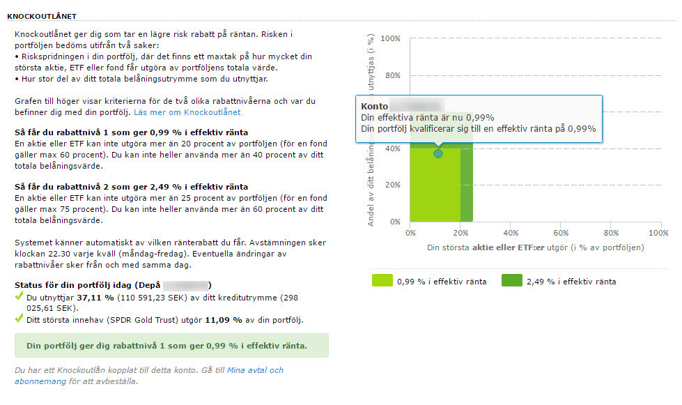 Det vill säga att man kan låna pengar med sina aktier som säkerhet till ovanstående räntor. De har båda lite olika villkor för respektive lån.