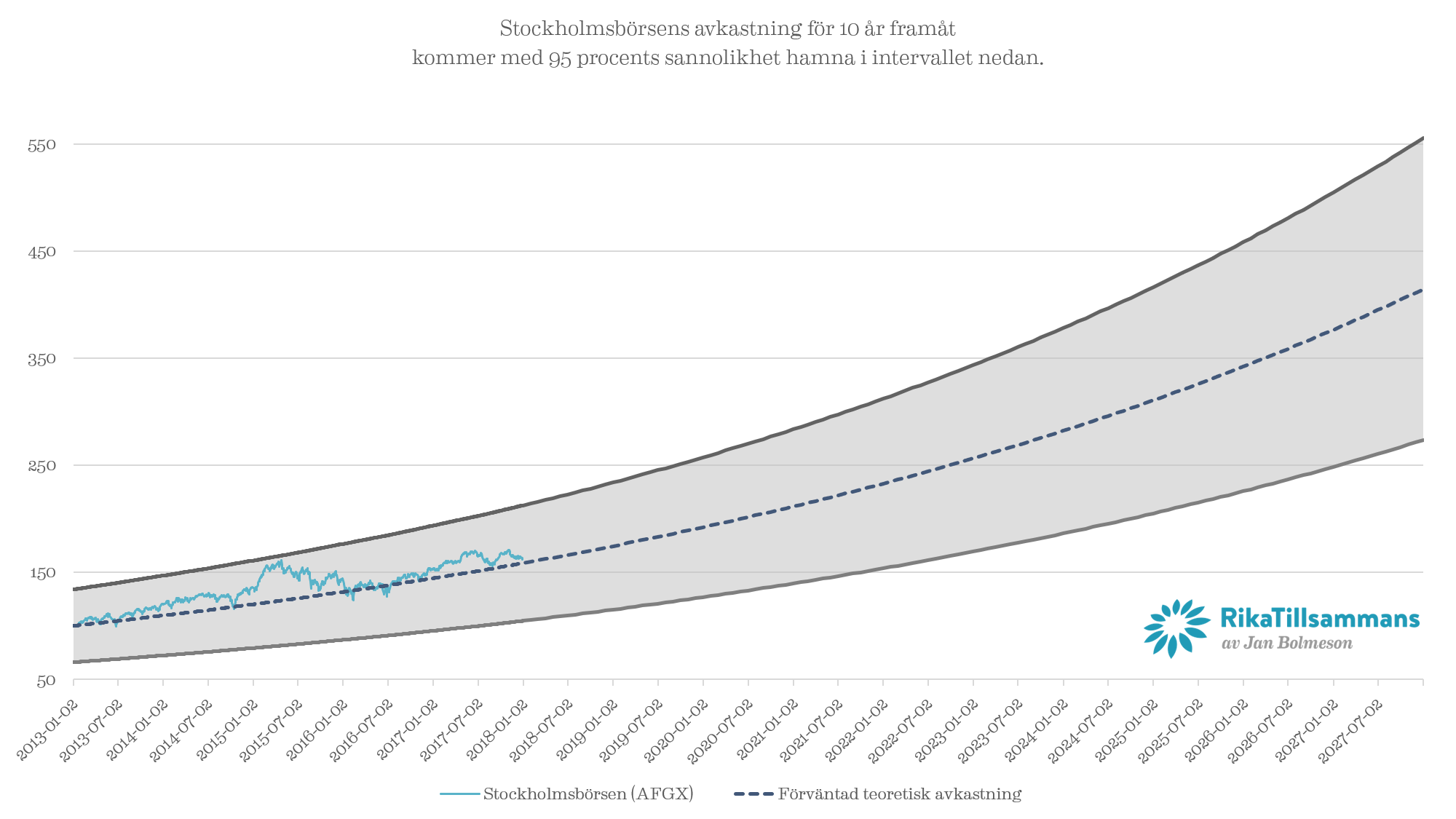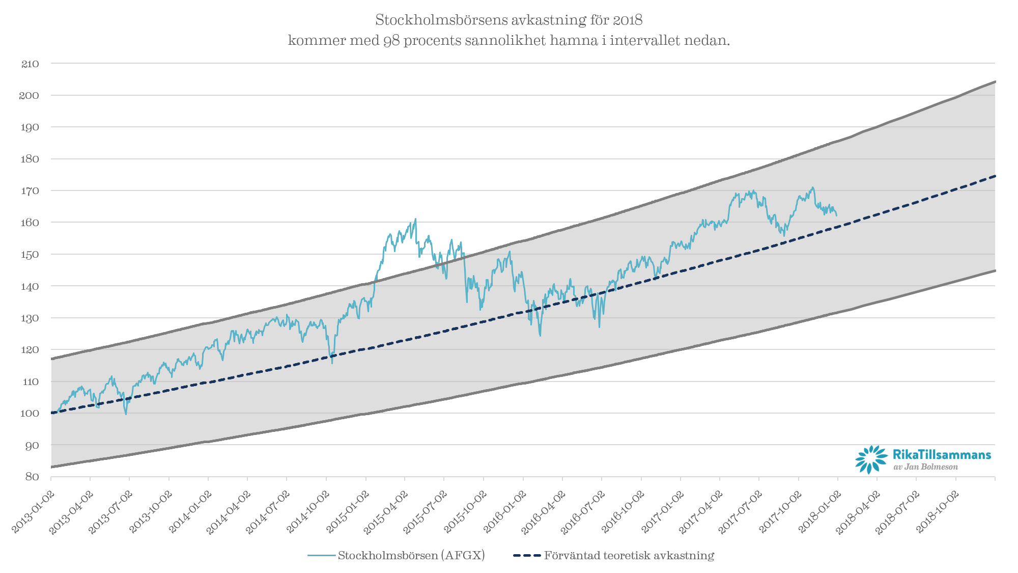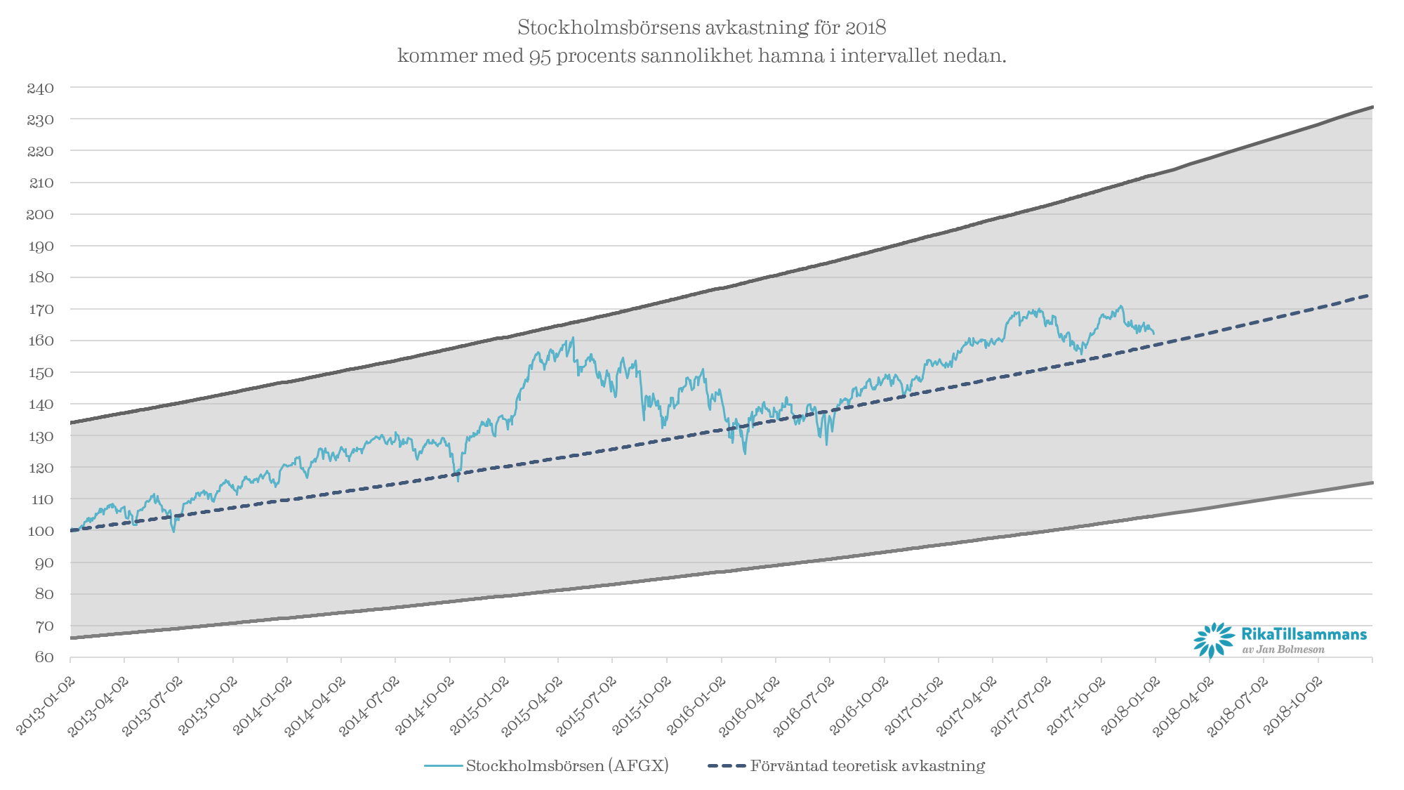 Börsens utveckling 2013-2017 samt 2018 med 68 % sannolikhet