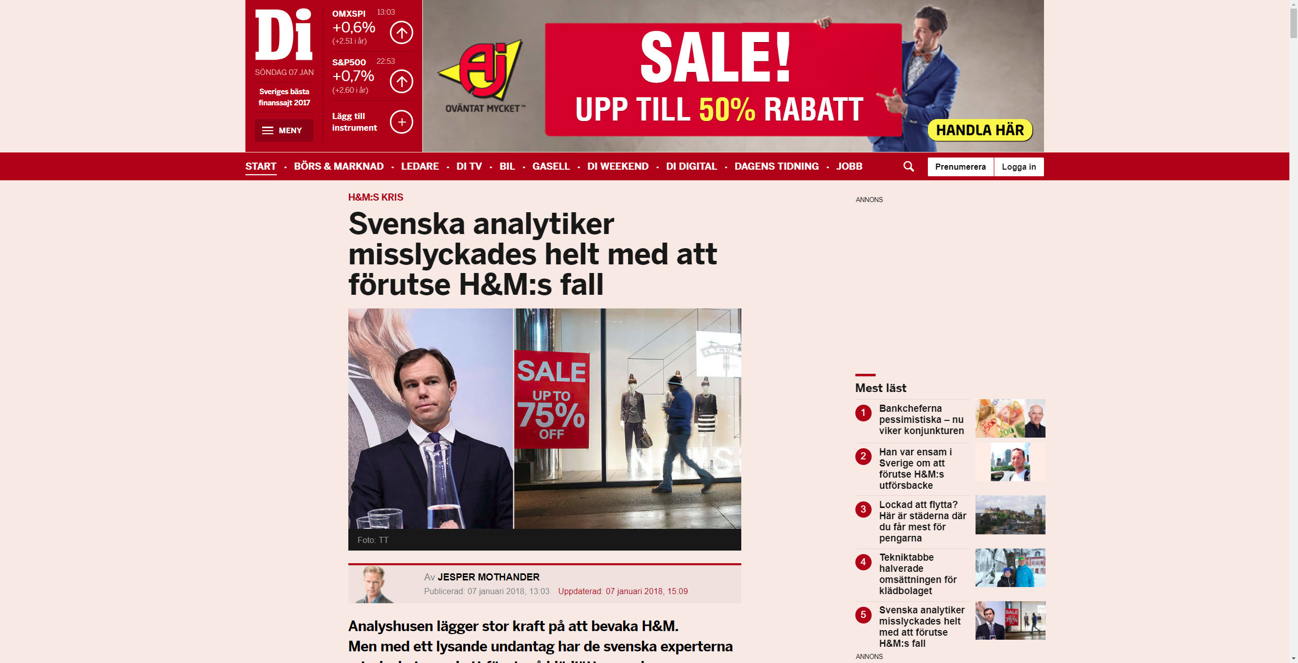 Så här såg artikeln ut igår: