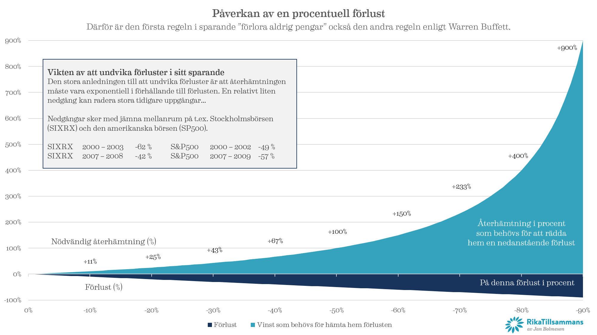Warren Buffets första och andra regel - förlora aldrig pengar. Påverkan av en förlust på den återhämtning som behövs.