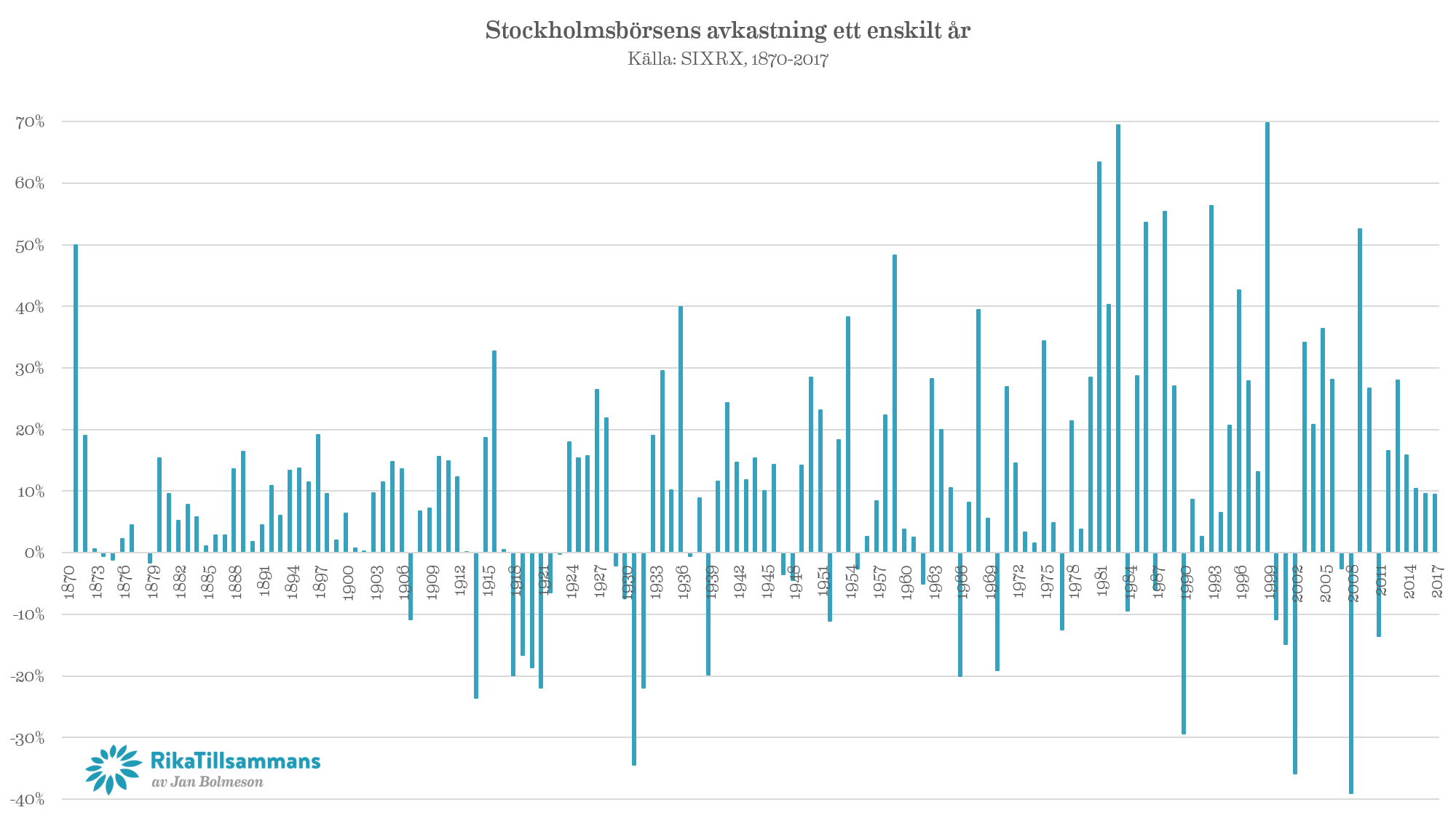 Stockholmsbörsens utveckling ett enskilt år mellan 1870 och 2017.