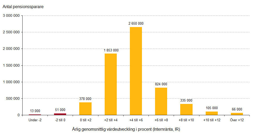 Min egen kommentar på detta är att 80 % av befolkningen har under 8 % avkastning i genomsnitt på sitt PPM-sparande… Det intressanta med just 8 % är att det är den genomsnittliga avkastningen på den svenska börsen exklusive utdelningar – alltså något som en lägsta jämförelsetröskel…
