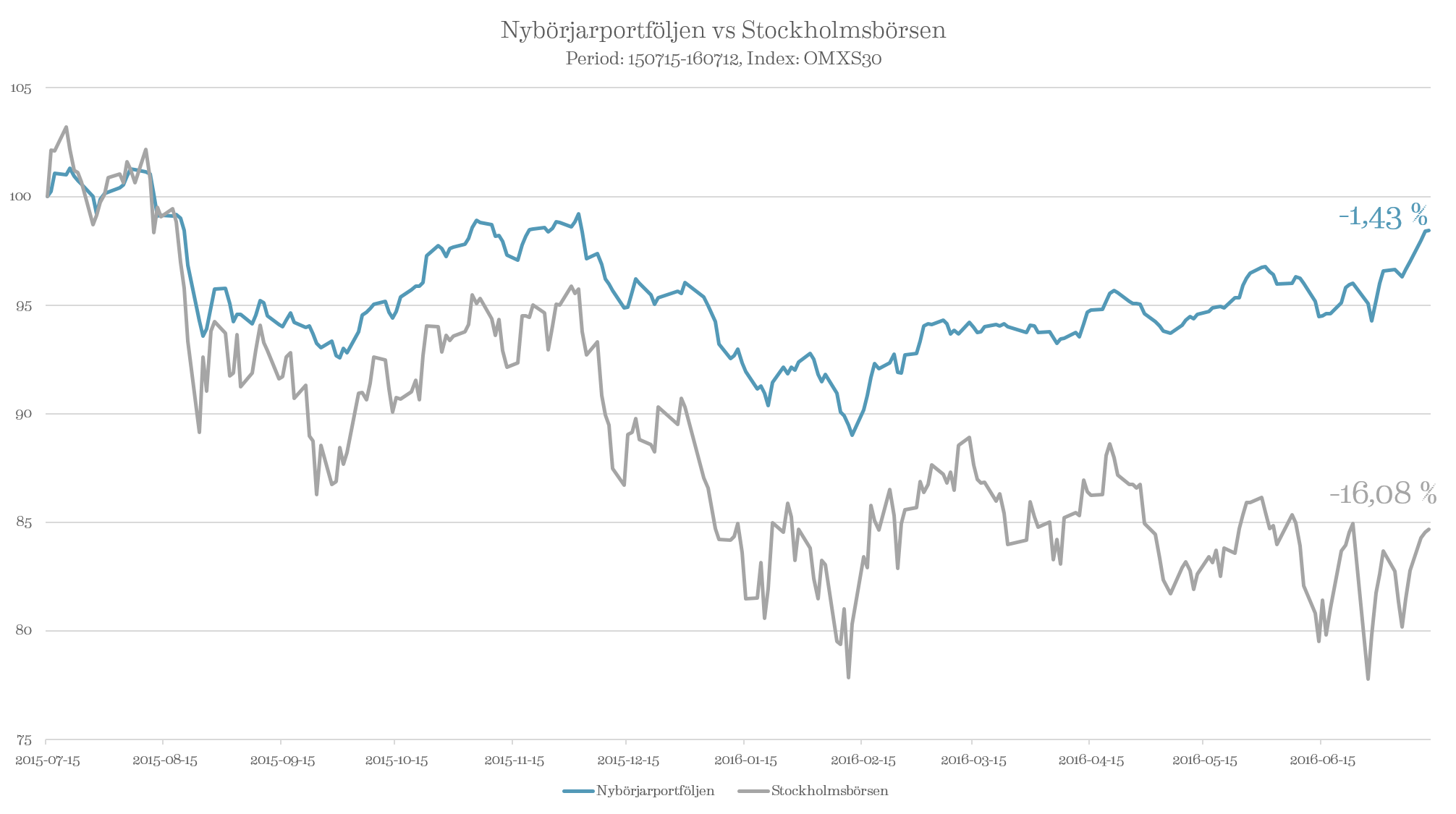 Nybörjarportföljens utveckling mot Stockholmsbösen de senaste 12 månaderna