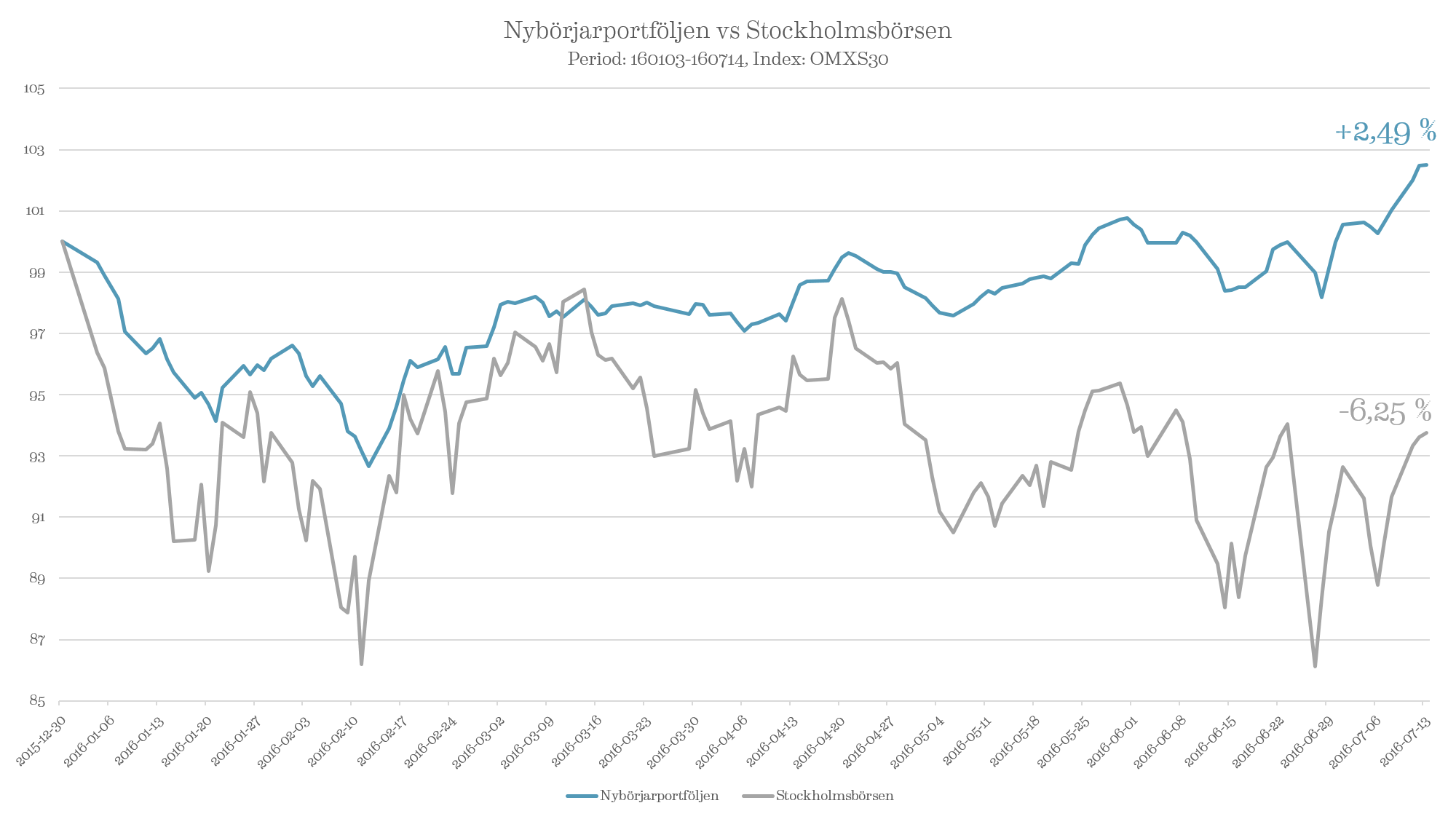 Nybörjar-portföljen i år: +2.5 % mot börsens -6.3 %