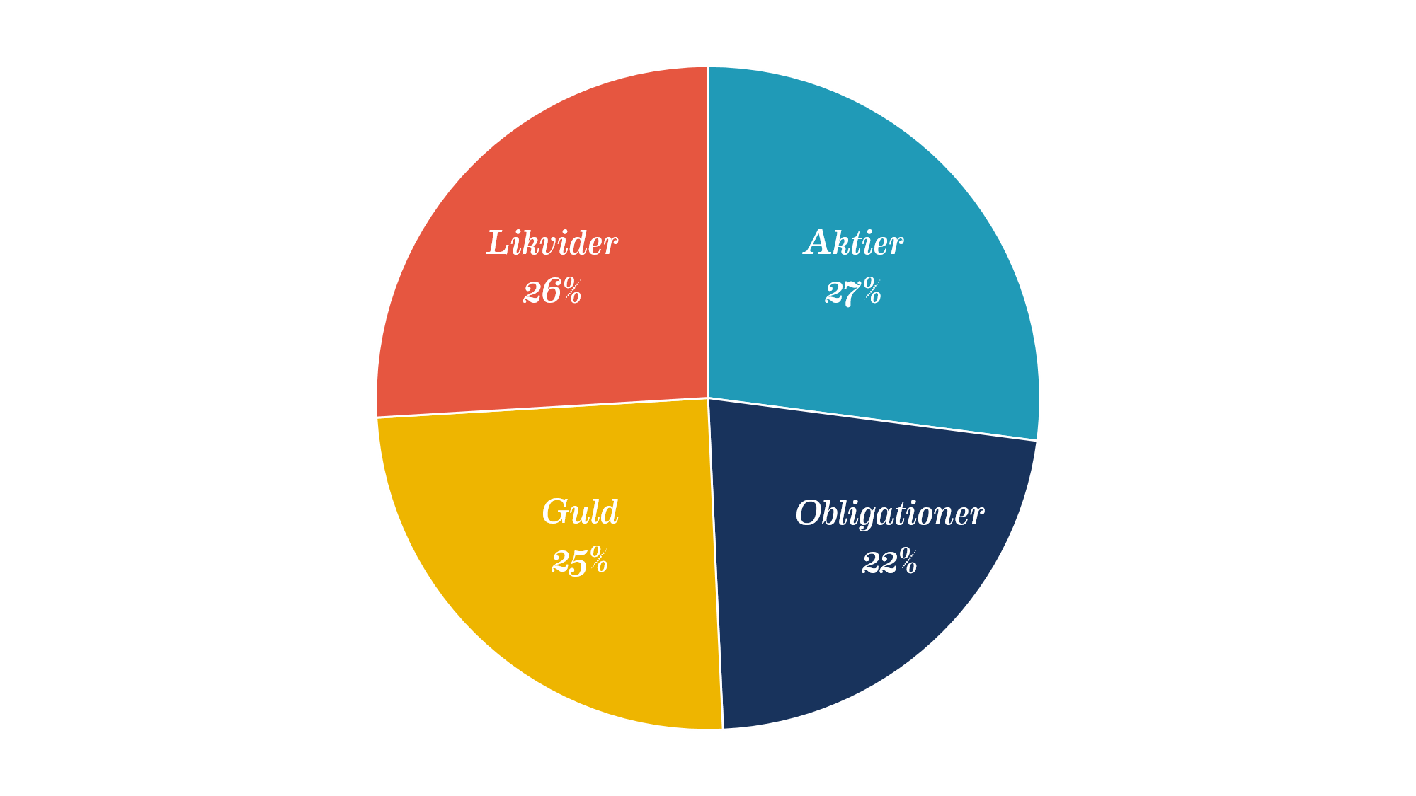 Den sista delen består mer eller mindre av kontanter eller likvida medel. Den här delen är till för att täcka upp för perioder av recession. Fördelningen ser i dagsläget ut som följer:
