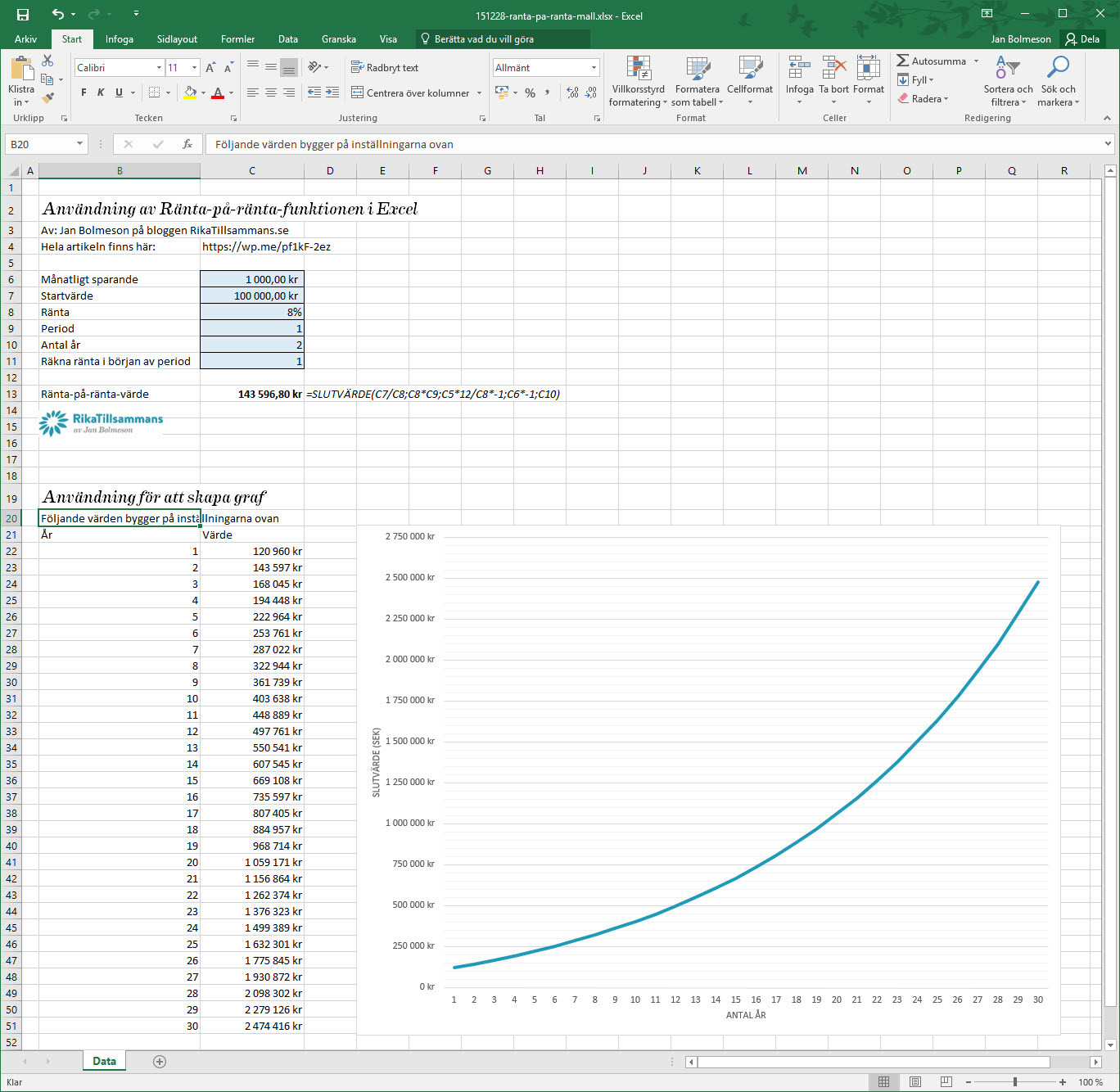 Du kan ladda ner Excel-mallen för ränta-på-ränta (.xlsx) här →