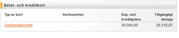 En annan sådan reflektion som jag har är t.ex. nedanstående bild som är skärmbild tagen från mitt kreditkort hos Swedbank. I nedanstående exempel har jag en kredit på 30 000 SEK på kortet och således idag har jag använt ca 3 784 SEK av den krediten.