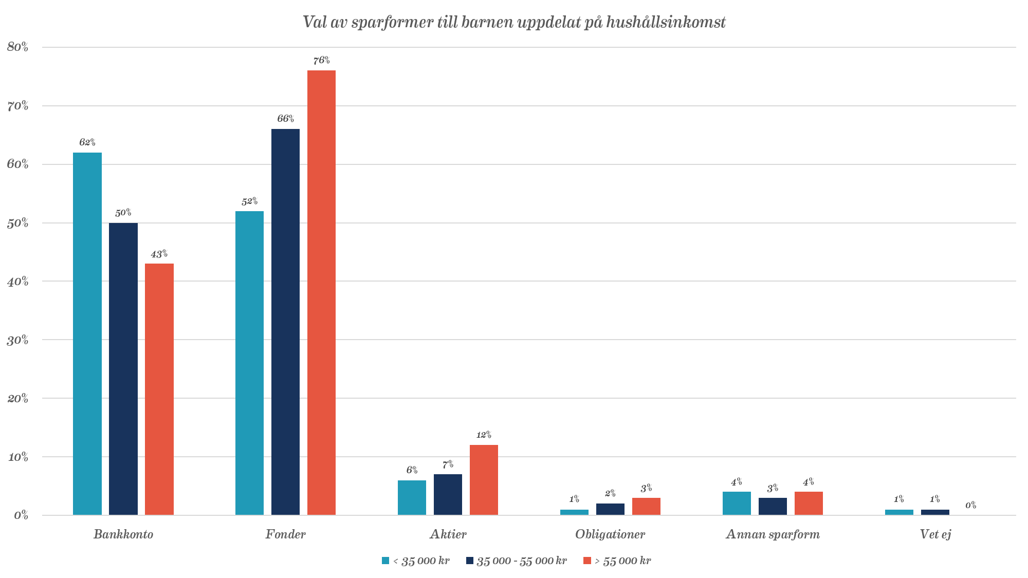 - Människor med låga inkomster (som tar tips från Aftonbladet?) lägger pengarna på bankkonto (62 % vs 43 %)