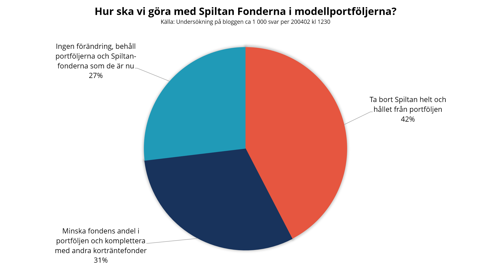 Få har missat dramat med fonden Spiltan Räntefond Sverige som pausade sin handel vilket ledde till problem för tusentals sparare hos PPM, LYSA, Avanza med flera. I början av året hjälptes vi åt att samskapa modellportföljerna vilket var fantastiskt. Därav tänkte jag be om din hjälp och din åsikt – vad tycker du att vi ska göra med Spiltan Räntefond Sverige som har en ganska stor vikt i modellportföljerna?